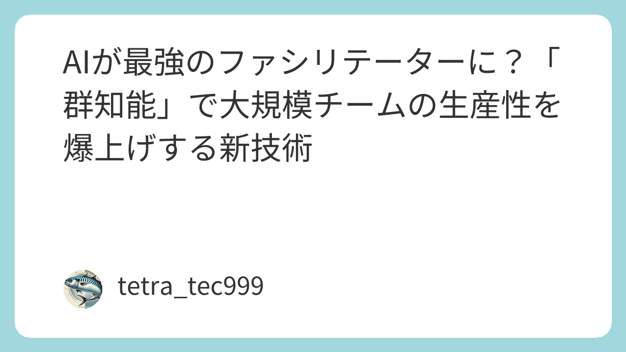 今日のテーマは僕らエンジニアにとって永遠の課題とも言える「会議」と「チームの生産性」に関する、興味深い技術ニュースです。大規模プロジェクトになればなるほど、関係者が増えて意思決定が遅くなる…なんて経験、誰しもありますよね。そんな悩みをAIが解決してくれるかもしれません。