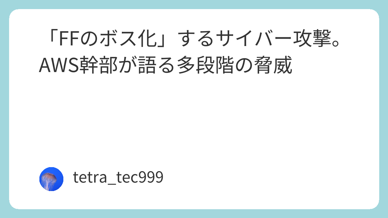 今回のStackoverflowのポッドキャストから、現代のサイバー攻撃がいかに「FFのボス」のように多段階で巧妙化しているか、そしてAIがセキュリティの攻防にどう影響を与えているかについて考察しました。