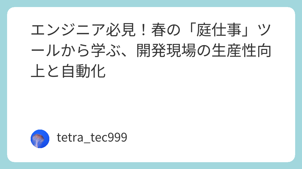 エンジニア必見!春の「庭仕事」ツールから学ぶ、開発現場の生産性向上と自動化