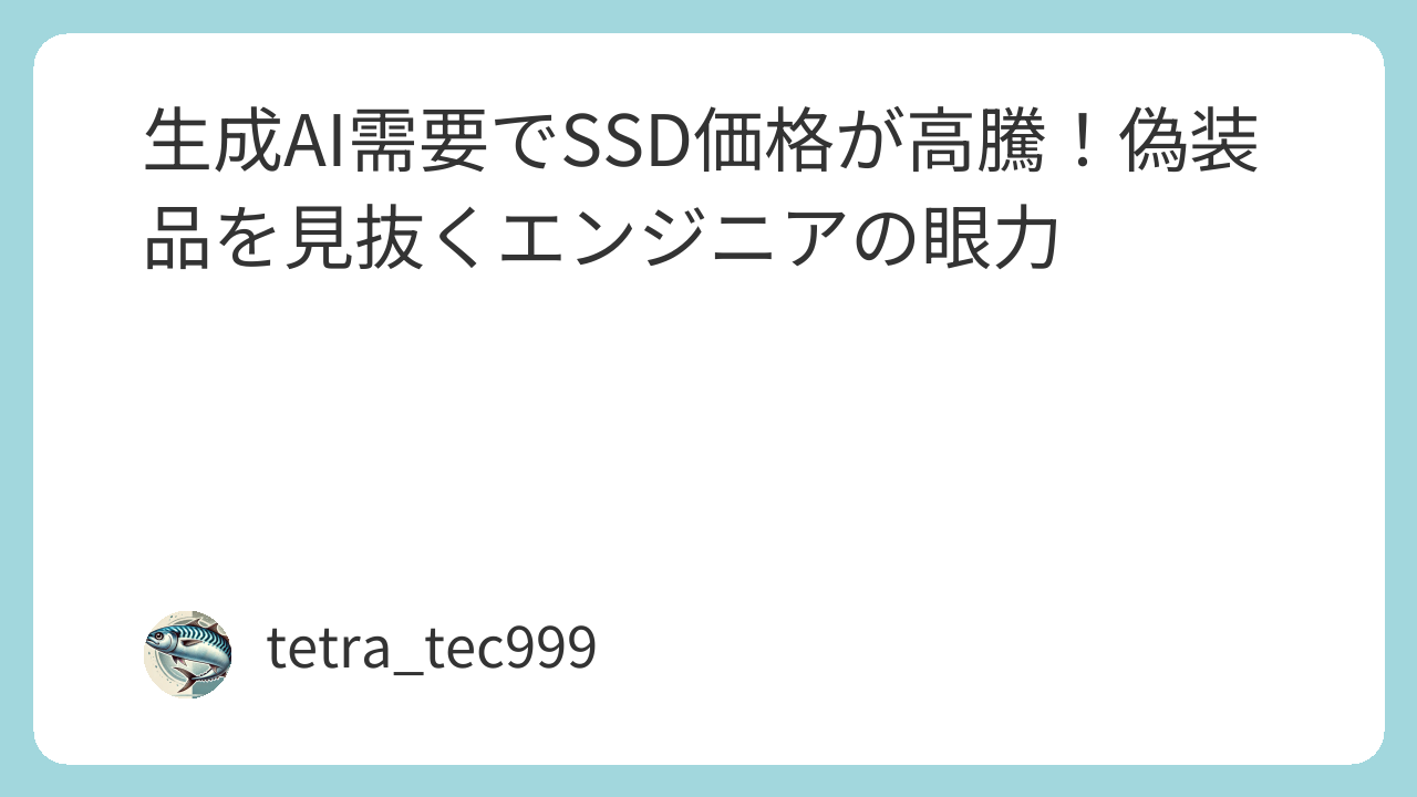 その結果何が起きているかというと、市場価格の異常な高騰です。そして、価格が高騰すれば必ず現れるのが……そう、「偽物」です。今日は、エンジニアとして絶対に見過ごせない、かなり巧妙な偽装SSDのニュースについて深掘りしていきたいと思います。