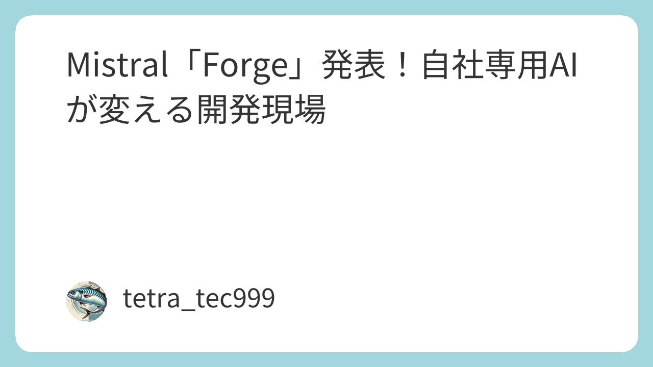 本日は、Mistral AIが発表したエンタープライズ向けの新しいモデルトレーニングプラットフォーム「Forge」について、日本の開発現場や私たちエンジニアのキャリアにどのような影響を与えるのか、他社プラットフォームとの比較や具体的なユースケースを交えながら、独自の視点で深掘りしていきたいと思います!