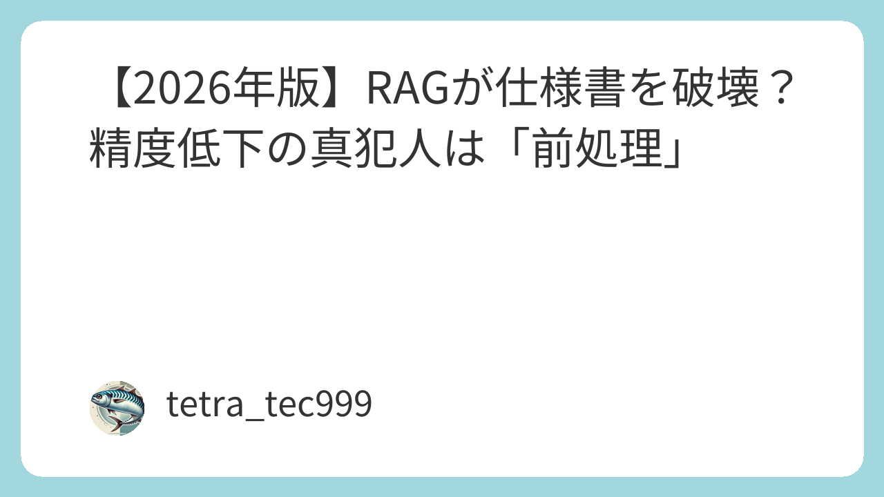 【2026年版】RAGが仕様書を破壊?精度低下の真犯人は「前処理」