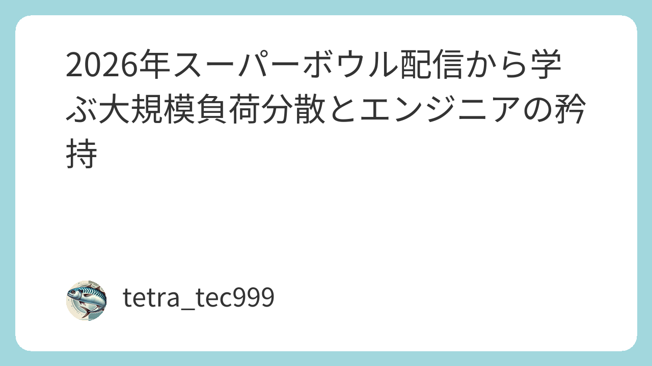 スーパーボウルのようなイベント配信の裏側では、何ヶ月も前からカオスエンジニアリング(意図的に障害を起こして回復力を試すテスト)が行われているはずです。私たちの開発現場でも、「もしDBが落ちたら」「もし外部APIのレスポンスが3秒遅れたら」というシミュレーションを、日々の開発プロセスに組み込むべきです。2026年の今、システムの堅牢性は「作って終わり」ではなく「壊して試す」ことで担保される時代です。