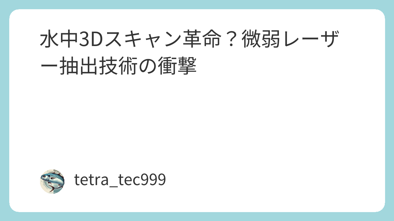 この技術のアプローチは、水中だけでなく、「濃霧の中での自動運転」や「粉塵が舞う工場内でのロボット制御」など、視界不良環境下でのセンシング技術に応用できるヒントが詰まっているかもしれません。アルゴリズム屋としては、「条件が良いときしか動かないコード」ではなく、「最悪のケースでもロバストに動くロジック」をどう組むか、大いに刺激を受けます。